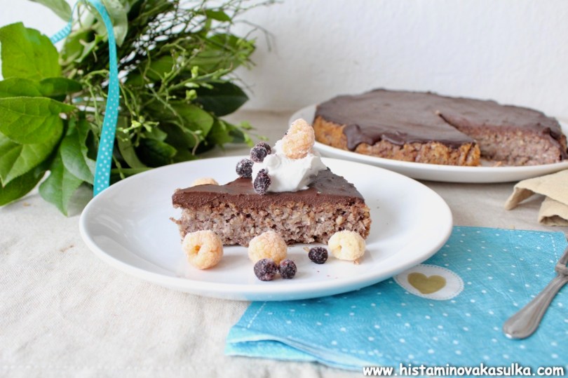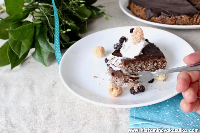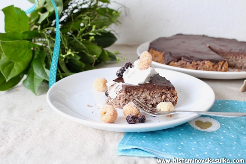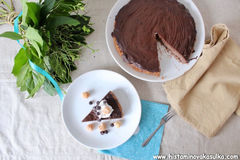 Tento dortík nebo klidně koláč, jak budete chtít, vznikl na jednu oslavu podle jasných požadavků bez lepku a bez mléka. Co vás na něm může zarazit je čokoládová vrstva navrchu. Jak ale víte, není pravda, že by histaminik nesměl každé kakao či že nemůže tolerovat kvalitní hořkou čokoládu, ale o tom si u mě ma blogu můžete přečíst v mnoha příspěvcích. Nakonec jsem se rozhodla však recept přidat, protože základ koláče je bez lepku, mléka i nízkohistaminový, a čokoládové ganache můžete klidně nahradit třeba ovocem či kokosem. Prostě většina receptů je úplně jednoduše převeditelná do nízkohistaminové verze a fascinuje mě, jak se poslední dobou objevují nízkohistaminové recepty, které jsou prostě normální recepty na koláč či jiné jídlo a dostaly nálepku nízkohistaminové pro jejich zviditelnění.