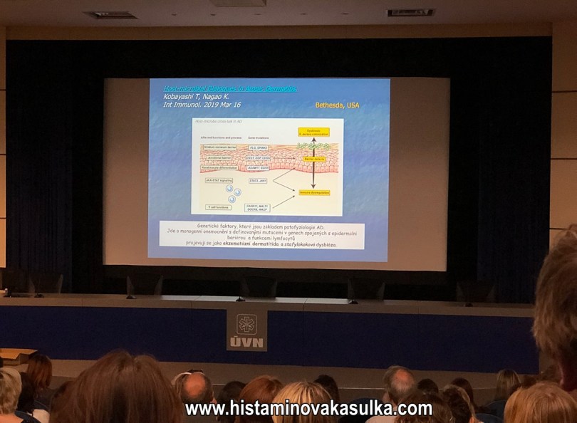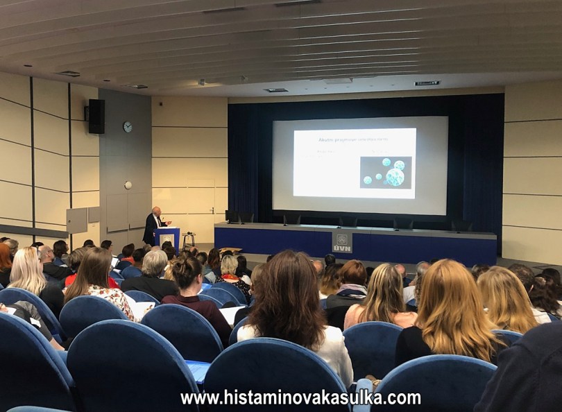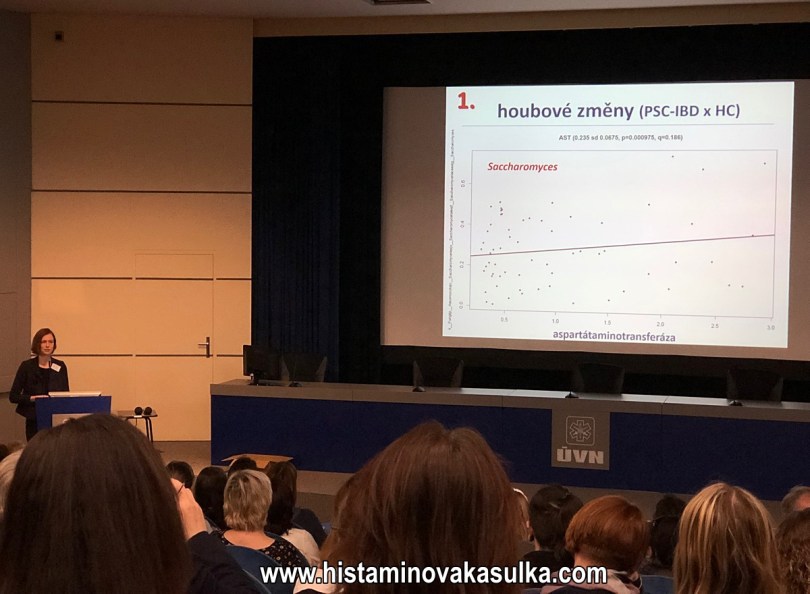 První přednáška byla na téma spojení mozku a střeva, což je dráha, kterou dnes zkoumá řada vědců, protože mikrobiota ve střevě je úzce spojena i s funkcí mozku a oba tyto orgány se navzájem ovlivňují a regulují. Dr. Berčík momentálně zkoumá v kanadském Ontariu a ukázal nám, co lze zkoumat nejen na myších, ale jak je využít i pro zkoumání lidské mikrobioty pacientů s IBS s depresivními sklony. Zajímavé je, že u myší s vyvinutou mikrobiotou stačí jen týden podávání antibiotik, aby došlo ke změně chování. A nejen to, změny jsou mapovatelné i na mozku, především v oblasti amygdaly a hippocampu (a vy už možná víte, že amygdala může být klíčová k řešení vašich problémů s histaminem). U člověka to nemusí být tak viditelné a o to je podle mě ještě více zrádné. V tomto směru nám také dr. Berčík ukázal, v čem tkví riziko fekální transplantace (a proto vás od neodborné či domácí aplikace odrazuji), tedy když mikrobiotu nervózní myši přenesli na druhou bezmikrobní, začala se chovat jako ta “nervózní”. Také nesmíme zapomínat, že většina serotoninu se tvoří ve střevě, takže když nebude správně fungovat, může to mít přímý dopad na neurotransmitery a vaši náladu. A co mě ještě zaujalo, že celá tahle osa má spojitost s bloudivým nervem a vy už také jistě víte, že jeho stimulace je protizánětlivá.