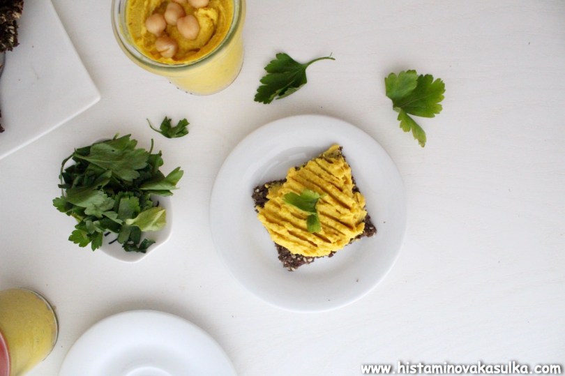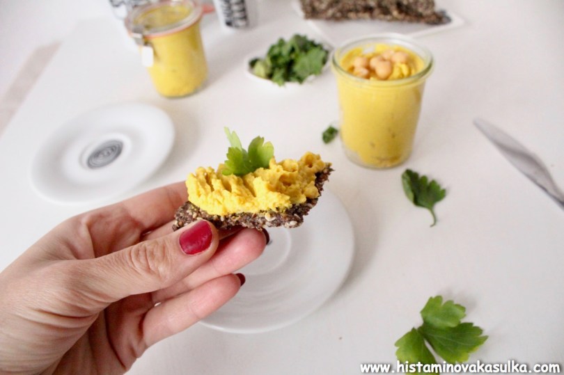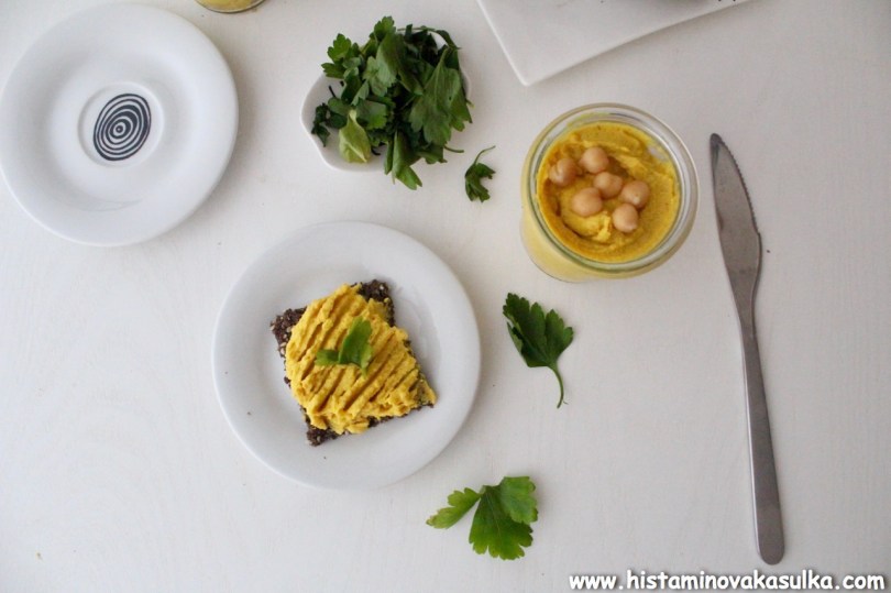 O tom, jaké skvělé vlastnosti má cizrna, se dočtete zde. Když ji správně uvaříte (zde), histamin obsahovat nebude, ale zato dostanete kvalitní zdroj bílkovin i vlákniny. Dlouho jsem si říkala, že přidávat recept na hummus je jako nosit dříví do lesa, najdete jich tolik a jeden inspirativnější než druhý. Nakonec jsem se rozhodla jej přidat, abyste viděli, že je jednoduché jej doma připravit a nemusíte kupovat. Ten kupovaný téměř vždy obsahuje nevhodné konzervanty, poměrně dost citrónové šťávy a kdoví jakou kvalitu olejů. Vy si takto můžete doma připravit vlastní, z kvalitní bio cizrny, přidat kvalitní olivový olej, soli podle chuti, citrón úplně vynechat a přidat koření podle tolerance. Já jsem v tomto receptu zkombinovala ještě s protizánětlivou dýní, o které si více můžete přečíst zde.