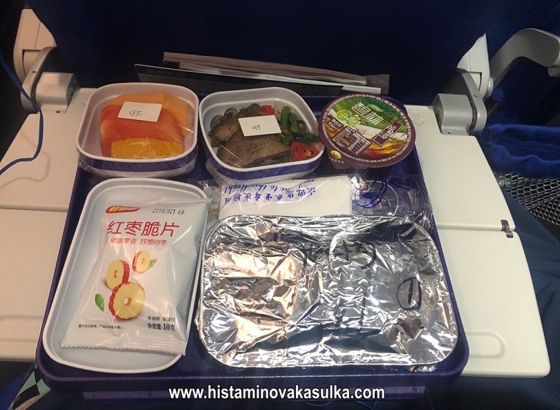 Mezi lidmi panuje, že se nesmí nosit vlastní jídlo do letadla. Není to pravda. Za prvé, pokud chcete mít klid, napište předem letecké společnosti, že potřebujete dietu (v mém případě bez lepku, ale také bez dalších 10 ingrediencí, prostě vyjmenujte nejhorší potraviny, co vám vadí). Vždycky to bylo tak, že mi letecká společnost napíše, že v takovém případě mi nedokáže zajistit jídlo na palubě a tedy že se musím zásobit sama. Myslím, že pokud můj blog čtete pravidelně a sledujete mé reporty z jednotlivých leteckých společností, je vám jasné, že skloubit třeba bezlepkovou dietu s dalšími, je problém. Za mě prostě jídlo v letadle nedoporučuji, vetšinou je nějaké maso nebo ryba a sami jako histaminici víte, jak je to s tou kvalitou i v běžných obchodech. Tedy je dobré mít sebou dost svačinek. Pokud není jídlo tekuté, nebude s tím problém. Tedy např. i taková rýže se zeleninou, různé zeleninové a luštěninové placky, salát s vejci či sušenky a koláče nejsou problém. Do Mexika jsem v příručním na zádech táhla celý bochník domácího chleba a nebyl nejmenší problém (jen si dejte pozor, do některých zemí nesmíte některé věci vozit, takže volte jen dostatek jídla na cestu). Stejně tak můžete volit různé proteinové/raw tyčinky podle tolerance, případně třeba luštěninové krekry. Někdo vozí ořechy, ale s těmi buďte opatrní, aby nikdo kolem neměl alergii, každopádně vynechte arašídy (kvůli možné přítomnosti člověka s alergií na ořechy a roznesení alergenu klimatizací). Mě také hodně pomáhá nesířené sušené ovoce jako jackfruit nebo mango, které využijete i proti zaléhání uší bez nutnosti použít často nevhodné žvýkačky. Ještě se mi dokonce nestalo, že by mi vyhodili čerstvé ovoce a zeleninu. Každopádně berte to tak, že budete několik hodin sedět bez výdeje energie a tedy nemusíte jíst tak jako při fyzické aktivitě. Takže ano, jídlo svoje si vzít můžete. Pokud jste zvyklí dělat nějaké menší půsty, osobně doporučuji i spíše menší půst (snížení histaminu), ono se vám opravdu nic cestou pár hodin bez jídla nestane a budete mít jistotu.
