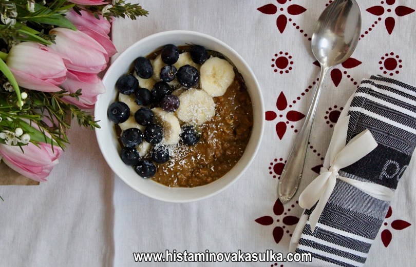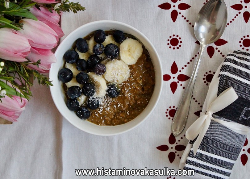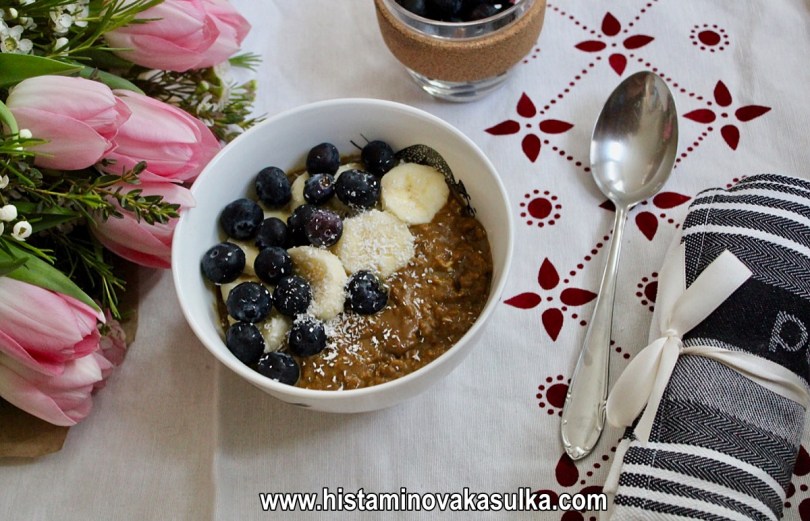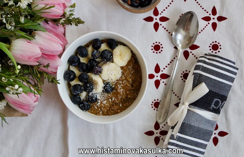 Občas pro zvýšení bílkovin a celkově nutričního profilu, pokud nepřipravuji tzv. noční kaši (necháte pouze přes noc odležet a konzumujete bez vaření), přidávám při vaření vejce. Pokud na ně nejste alergičtí, určitě doporučuji, ale není to nutné. Kaše tak lze připravit bez lepku (musíte volit certifikované ovesné vločky), bez bílkoviny kravského mléka, vajec či třeba ořechů. Borůvky jsou navíc velmi dobře tolerované a řadí se mezi nejzajímavější potraviny v rámci protizánětlivého potenciálu. Když k tomu přidáte protizánětlivou kurkumu, skořici a vlastně i to kakao (nepražené, pokud nemáte alergii a nevadí vám stimulanty), máte opravdu skvělý start do nového dne:).
