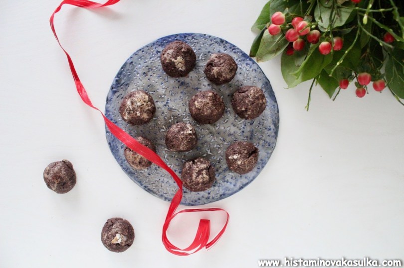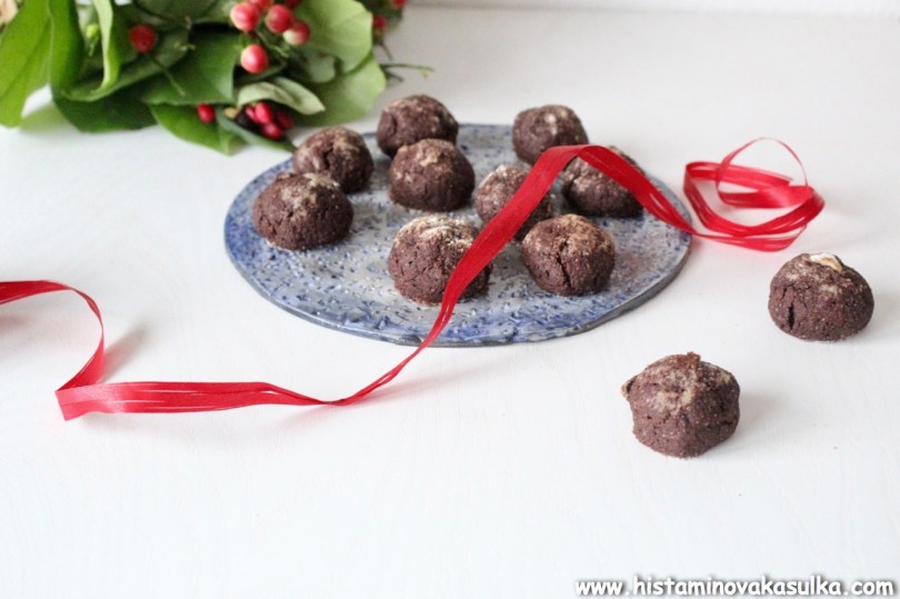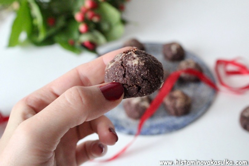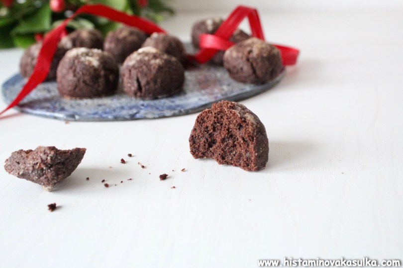 Ano ano, jistě jste na to čekali. Všechny předchozí recepty máte určitě už vyzkoušené a přemýšlíte, co nového přidat. Pokud tedy nedržíte nějakou redukční dietu, nemáte fobii z trochu cukru, nepraženého kakaa nebo obilných mouk, tak tenhle recept si rozhodně vychutnáte. Dá se udělat bez lepku i bez mléčné bílkoviny/laktózy, jen to kakao jsem tam nechala (mluvím o tom nepraženém, histamin v kakau objeven nebyl). Ale říkala jsem si, že nahradit kakao třeba oříšky nebo kokosem, mohli by jej tolerovat i zarytí histaminici, kteří se třeba kakao stále bojí vyzkoušet. Pokud jste na začátku diety, je nejlepší se v eliminační fázi prostě všem těmto lákadlům vyhnout a smlsnout si třeba na čerstvém ovoci. Nebo nějakém bezpečnějším koláči. Ale moc dobře chápu, že pokročilý histaminik chce zkoušet a objevovat.