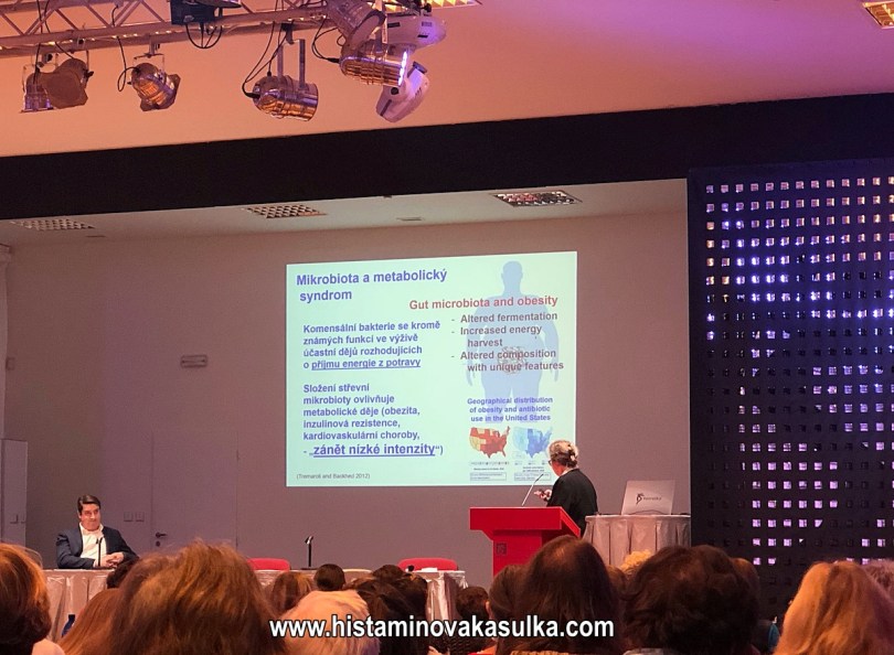 Úvodní slovo měla profesorka Tlaskalová-Hogenová, která mluvila o mikrobiomu a jeho roli v patogenezi chronických chorob. V tomto směru mi přišlo, že většinu informací již máme a prakticky se opravdu už nedá pochybovat, že mikrobiota a její zdraví hrají extrémní roli v našem zdraví. Několik prvních minut paní profesorka věnovala i vlivu mikrobioty na metabolický syndrom, kdy je důležitý si uvědomit, že mikrobiota má rozhodující podíl na tom, kolik energie přijmeme z potravy a že ovlivňuje metabolické děje, a většina západních chorob jako insulinová rezistence či obezita jsou spojovány s mírným chronickým zánětem a změnami v mikrobiotě. Dotkla se i hygienické hypotézy, tedy toho, že industrializace výrazně ovlivňuje střevní mikrobiotu (tedy hlavně průmyslové zpracování potravin) a moderní styl života prostě vede ke snížení diverzity mikrobioty. Jelikož nechci, aby tento článek byl tak dlouhý, že jej nedočtete do konce, proto skočím rovnou na další přednášku.