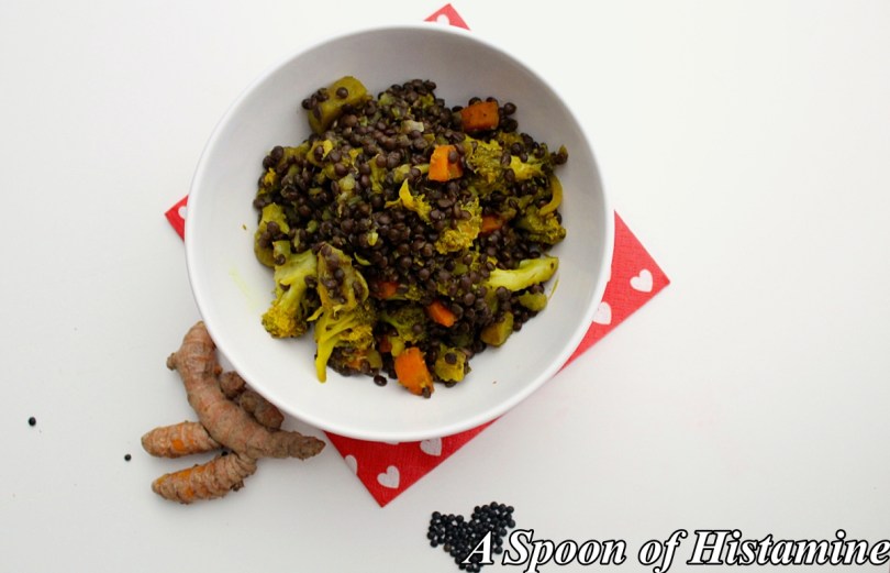 Tedy ne, dnes nejde o žádnou velkou gastronomii, ale kloubení spousty protizánětlivých zdravých surovin dohromady s úžasnou kurkumou. Pokud bych vám mohla radit, zkuste příště ke kurkumě hodit špetku kvalitní skořice a budete mile překvapeni, jak chuť skořice sedí dohromady s batáty a čočkou. No nic, žádné dlouhé řeči. Dobrou chuť.