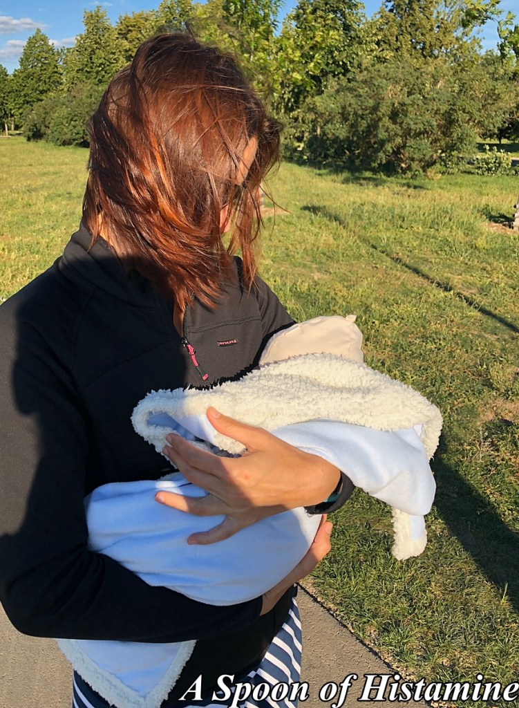 Ano, pořád je toto období pro mne obklopené mlhou. Mohla jsem teď psát něco o příkrmech a stravování v těhotenství. Místo toho si půjdu umýt zuby a zalehnu do postele. A možná mě napadne, že by Adel měla modré oči po mně. A vás možná napadne, že jsem divná, že jsem jí dala jméno.