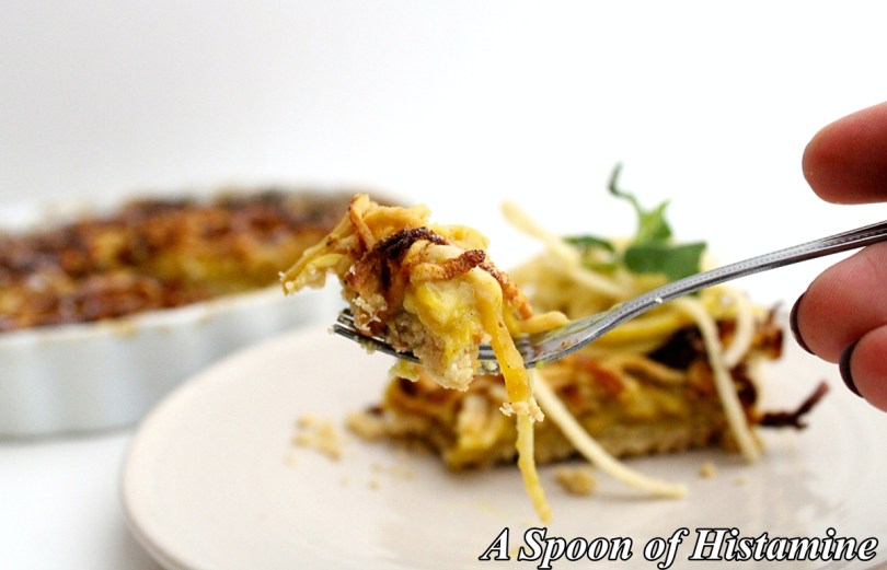 Někdy se vám může zdát, že je recept zbytečně složitý, ale často je to právě naopak. Nikdy se nenechte odradit třeba počtem surovin nebo tím, že nemáte nějaké nástrojové vybavení. Buď se můžete inspirovat a další blbůstku do domácnosti zakoupit a jídlo si zpestřit, nebo můžete vždycky použít staré dobré struhadlo, krájení na tenké plátky atd. Fantazii se meze nekladou a věřím, že dokáže kouzlit, jen o tom možná sami zatím nevíte. Takže dnes jeden rychlý, křehký, s jablíčky, které už nemusí být dávno krásné, ale když je oloupete, v koláči vám sednou jedna dvě. A skořice, té se bát nemusíte, dle všeho histamin neobsahuje, ale zato je to skvělý bojovník proti zánětům a bakteriím.