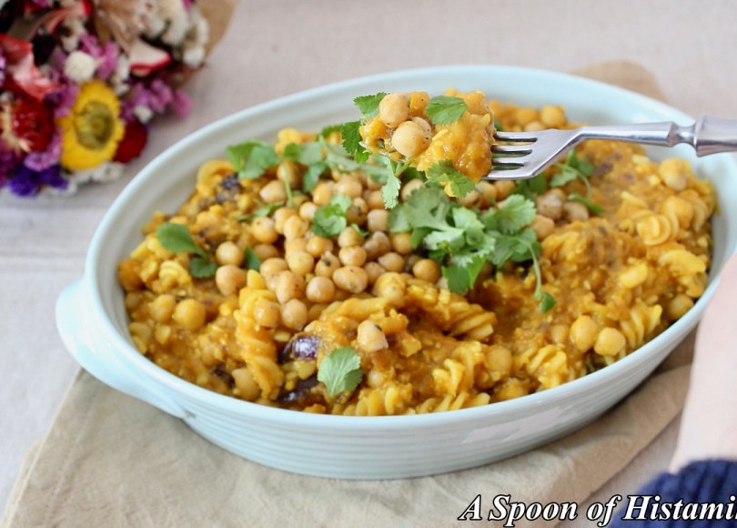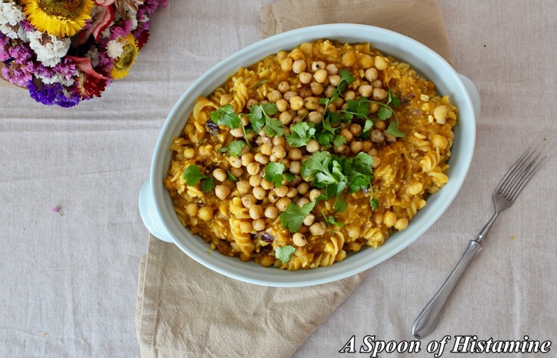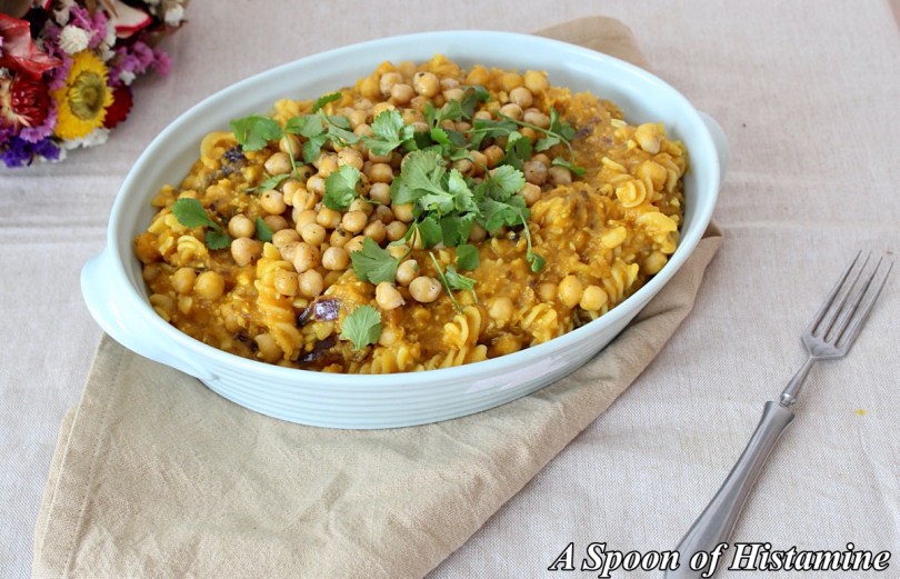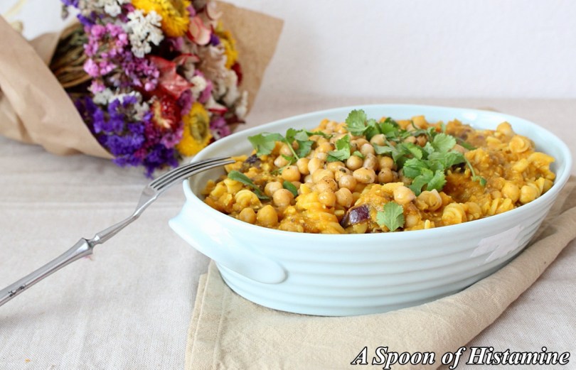 Bezlepkové těstoviny v dýňové omáčce s cizrnou