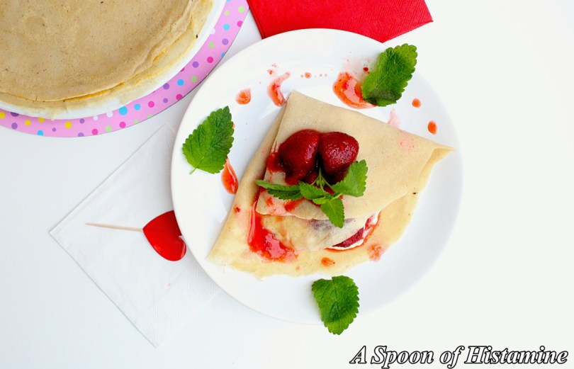 Ingredience na palačinky rozmixujte dohromady, nechte 5 minut postát a pak menší naběračkou nalijte těsto do nepřilnavé rozpálené pánve a opečte z obou stran. Palačinku dejte na talíř, přiklopte druhým talířem, než dosmažíte další, aby palačinky zůstaly teplé a vláčné. Podávejte s vybranou náplní. Dobrou chuť.