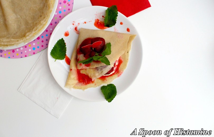 Pohankovo-slzovkové palačinky s kokosovým krémem a ovocem