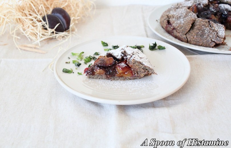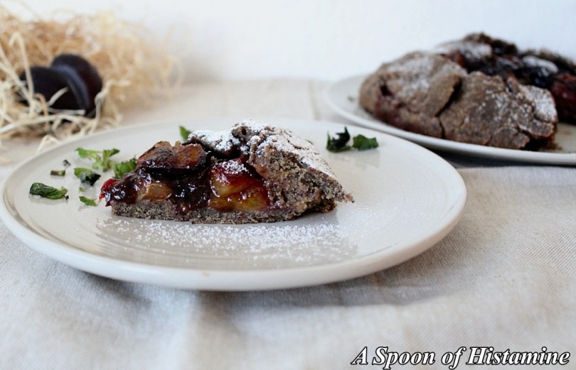 Smícháme mouky s kakaem a mákem, přidáme kokosový olej a vypracujeme drobenku. Přidáme studenou vodu, zpracujeme na hladké těsto a dáme do lednice na 20 minut odležet. Mezitím si nakrájéme švestky na menší kousky, smícháme s olejem, skořicí a cukrem. Troubu rozehřejeme na 170°C. Těsto není úplně kompaktní, ideální je ručně jej rozmačkat na pečícím papíře na větší placku, do prostřed vložíme náplň a opatrně ohneme okraje těsta přes náplň. S papírem přesuneme na plech a pečeme 35-40 minut. Necháme vychladnout a podáváme. Dobrou chuť.