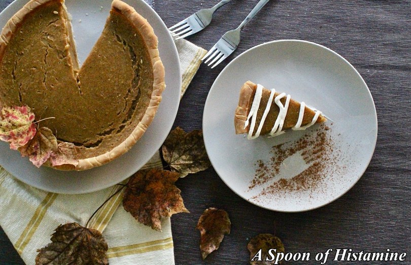 V roce 2012 jsem dělala svůj první dýňový páj ke Dnu díkuvzdání. Ale jelikož jsem po čase zjistila, že neobsahuje žádné pořádné fotografie a že je fajn některé ingredience vyladit, stáhla jsem jej a poopravila:). A jelikož se opět Thanksgiving Day blíží, přináším vám jej v novém kabátku:). O tom, že všechny ingredience jsou z pohledu histaminika v pořádku, se dočtete v rozmanitých článcích na blogu, doporučuji hledat třeba zde.
