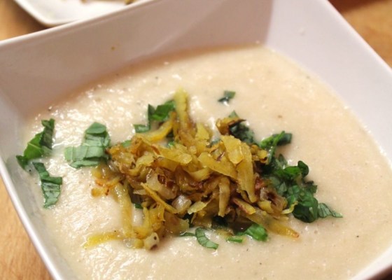 Krémová polévka z česnekových výhonků s dýňovým olejem
